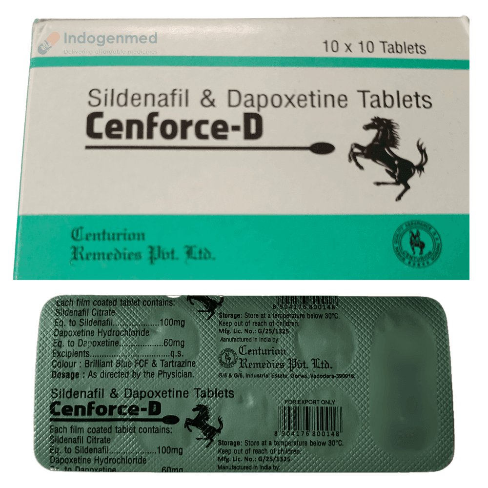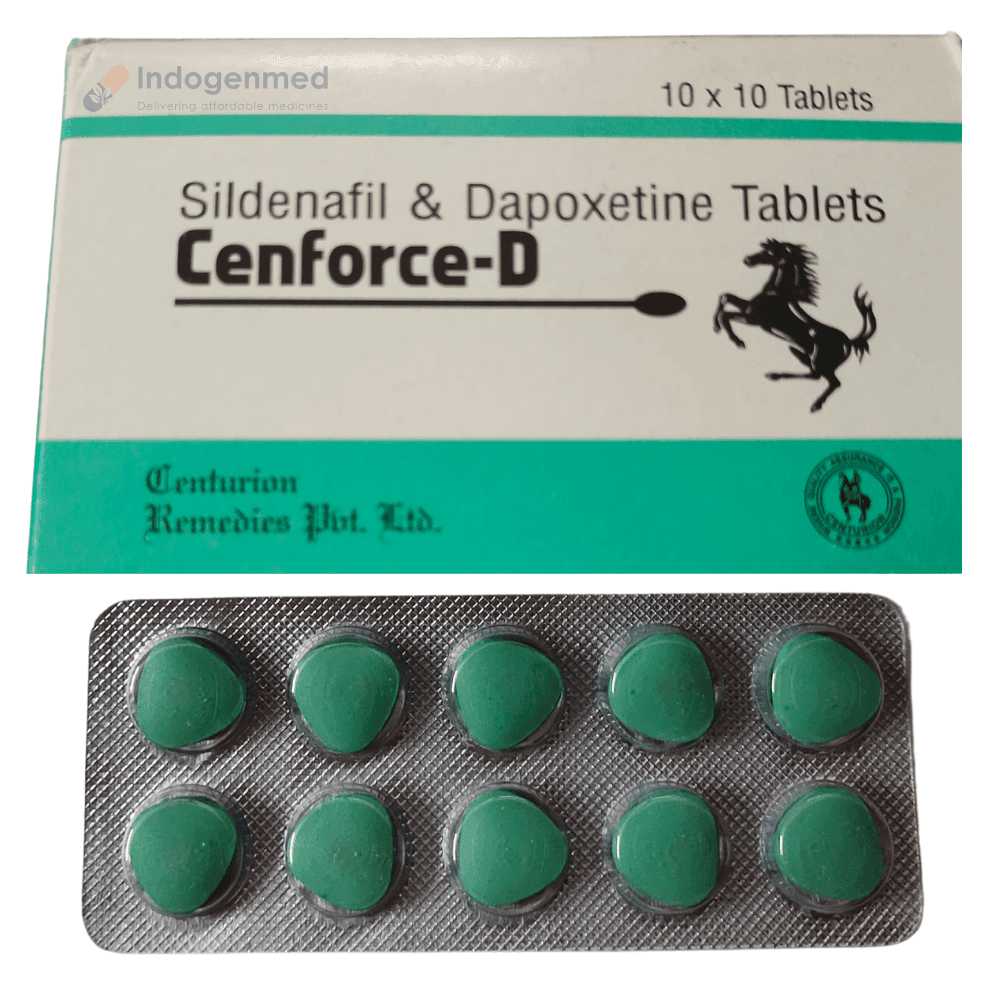 Cenforce-D is a powerful combination of Sildenafil and Dapoxetine. Sildenafil causes relaxation of blood vessels in the penis and promotes blood flow during sexual arousal. Whereas Dapoxetine allows for long-lasting intimacy and allows for a prolonged time in sex before ejaculation. Let us discuss in more detail the working of Cenforce D: