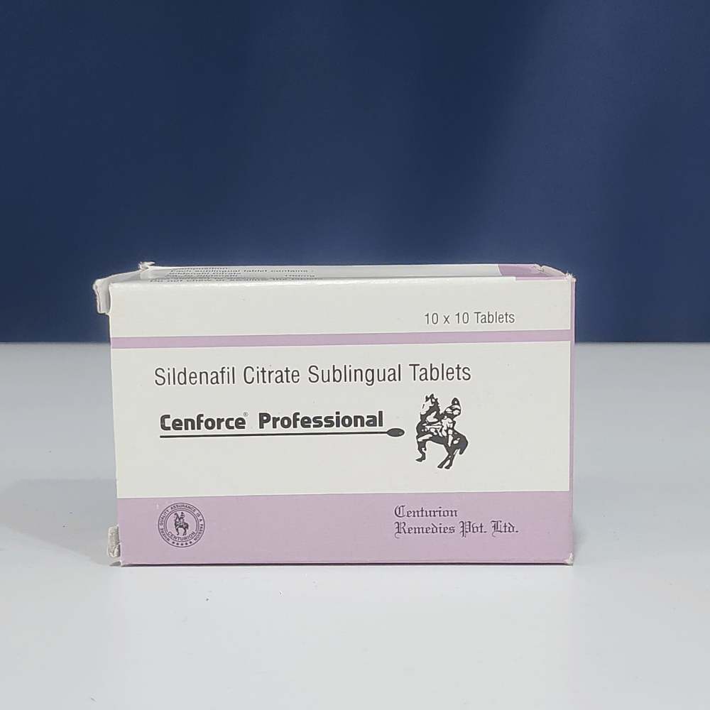 Cenforce Professional is a sublingual tablet containing Sildenafil Citrate manufactured by Centurion Laboratories (India). Sublingual means you place the tablet under your tongue and let it dissolve rather than swallowing it whole. It is prescribed for erectile dysfunction (ED) in men.