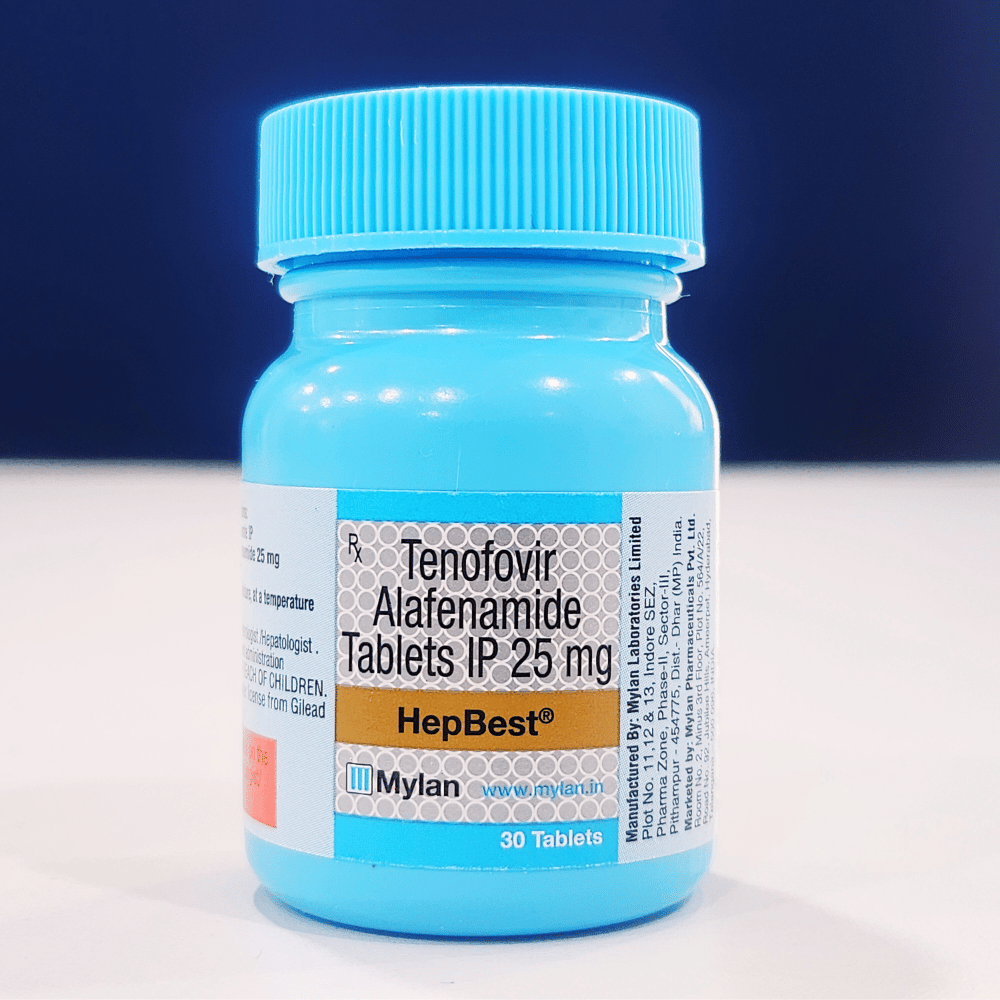 Hepbest 25 mg Tablet, manufactured by Mylan Pharmaceuticals, is an FDA-approved antiviral medication used to treat chronic hepatitis B virus infection. It contains Tenofovir Alafenamide, a nucleotide reverse transcriptase inhibitor that blocks the virus’s ability to replicate, reducing viral load, preserving liver function, and preventing further liver damage.