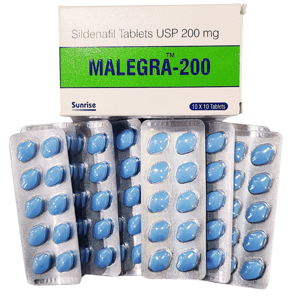 Malegra 200 mg is a prescription medicine for adult men with erectile dysfunction (ED). Each tablet contains Sildenafil Citrate 200 mg, a phosphodiesterase-5 (PDE-5) inhibitor that helps a man achieve and maintain an erection with sexual stimulation. Malegra is a generic sildenafil brand.