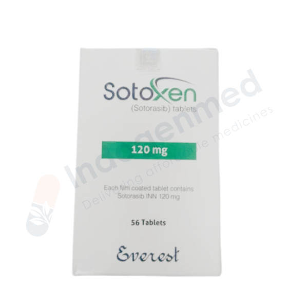 Patients undergoing treatment have more options, and taking sotorasib orally is simpler. With the ability to take medication at home, patients may avoid frequent hospital visits, which simplifies matters and encourages treatment adherence. Patients who reside in remote areas, have mobility issues, or face daily difficulties traveling to healthcare facilities will find this to be particularly useful. For more information about Sotoxen 120 mg, continue reading. Take Sotoxen sotorasib 120 mg Tablets four hours before or ten hours after taking an antacid if you’re taking both 120 mg of Sotoxen Sotorasib tablets and one. Introduction to Sotorasib 120mg Tablets Sotoxen Sotorasib 120mg Tablets are used to treat individuals with non-small cell lung cancer (NSCLC) that has progressed despite previous treatment or spread to other regions of the body. This medication is specifically designed for patients whose cancer harbors a specific genetic mutation known as KRAS G12C . People who have had at least one prior therapy session are the ones who are specifically treated with it. Keep the mixture cool and avoid breaking the pill. Do not chew the mixture anymore; drink it instead. To ensure you have all the medications, drink 4 ounces (120 millilitres) of water after rinsing the cup with water. If you will not be drinking the mix immediately, wait to stir it until just before consumption. How Does Sotorasib 120mg Work? If you are allergic to Sotoxen or any other medication, avoid using Sotoxen Tablets. Tell your physician or pharmacist instead. See your chemist for more information. The dosage is determined by your condition and how well you are handling the medication. Please only take this medication as your doctor prescribes, or use it more often or for longer than necessary. You’ll be more likely to have adverse effects, and your condition will not improve any quicker. The instructions for preparing and using Sotoxen 120mg should be carefully read and followed by anybody who has trouble swallowing tablets whole. Sotorasib 120mg Tablets – Uses Please ensure that you read and follow all the guidelines and instructions included with your pill box, as well as any accompanying medication guides or papers. Taking Sotorasib 120mg is usually recommended with or without meals. You may need to take up to 8 tablets to reach the full dosage; most people take it once daily. Follow your doctor’s advice. Consult with your pharmacist or physician if you need help understanding these processes. Sotoxen 120mg Tablets – Dosage Sotorasib is an option for adults with non-small cell lung cancer who have taken at least one previous cancer medication. It is administered when the cancer has progressed or spread to other body areas, and there is no alternative therapy. Your doctor will ensure the proper sort of tumour is identified before prescribing Sotoxen Drug. The recommended dosage is 960 mg, administered orally once daily. Diarrhoea and nausea are two typical adverse effects. Your medication regimen or dosage may need to be adjusted in light of the findings. Due to its excellent efficiency, Sotoxen Uses is often recommended over other medications. Other Dosage of Sotoxen Sotorasib Tablets Cizumab 100mg Injection Cladrim 10mg Injection Clokeran 2mg Tablets Cosalon Tablets Crizalk 250 mg Capsules Cycloxan 50mg Tablets Enzamide 40 mg Capsules Doxorex 10 mg injection Doxorex 50 mg injection Hertab 250 mg tablets Thalix 50 mg capsules Votrient 200 mg tablets Side Effects and Precautions of Sotorasib 120mg Tablets Using this drug may cause significant adverse effects. You were given this prescription because your doctor believes the benefits outweigh the risks. Careful doctor monitoring may reduce the risk. Serious side effects include liver disease symptoms such as persistent nausea/vomiting, lack of appetite, stomach/abdominal discomfort, yellowing eyes/skin, dark urine, and swollen hands/ankles/feet. Contact your doctor immediately. Lung complications from sotorasib may be lethal. If you develop lung symptoms, such as fever, cough, or shortness of breath, see a doctor immediately. Sotorasib often causes a harmless rash. It may be difficult to distinguish from an uncommon rash that could indicate a serious underlying condition. Seek immediate medical care for a rash. Hormonal birth control pills, patches, and rings may be less effective with this drug. It might cause pregnancy. Talk to your doctor or chemist about using reliable birth control while using this drug. New spotting or breakthrough bleeding may indicate birth control failure, so notify your doctor. This medication may increase the clearance of other drugs, potentially affecting their efficacy. Daidorexant, elacestrant, asunaprevir, ombitasvir/paritaprevir/ritonavir, lonafarnib, and quizartinib are impacted. Sotoxen Sotorasib 120mg Tablets vs. Other Medicines Comparing Soxoten with Gemcare: Basis Sotoxen (Sotorasib 120 mg Tablets) Gemcare (Gemcitabine 1 mg Injection) Brand Status Brand Brand and Generic Generic Name Sotorasib Gemcitabine Standard Dosage One tablet daily, with or without food Intravenous infusion; dosage varies based on treatment regimen and patient condition Safety Generally considered safe under medical supervision; may cause side effects like diarrhea, nausea, etc. Generally considered safe under medical supervision; may cause side effects like nausea, vomiting, etc. Cost USD 17,000.00 (approximate cost per month supply) USD 30.00 (approximate cost per 1 mg injection) Check the Sotorasib 120mg Tablets at Indogenmed and order them at a low cost now.
