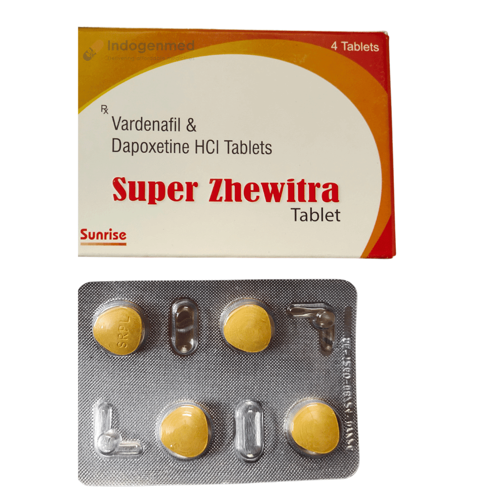 Super Zhewitra Tablets are one of the most effective generic medicines used for the treatment of erectile dysfunction (ED) and premature ejaculation (PE). Super Zhewitra is available in strengths such as Vardenafil 20 mg and Dapoxetine 60 mg and is supplied in a moisture-resistant blister pack of 4 tablets. Extra Super Zhewitra works by combining two proven medicines, vardenafil and dapoxetine, to deliver rapid and reliable results.