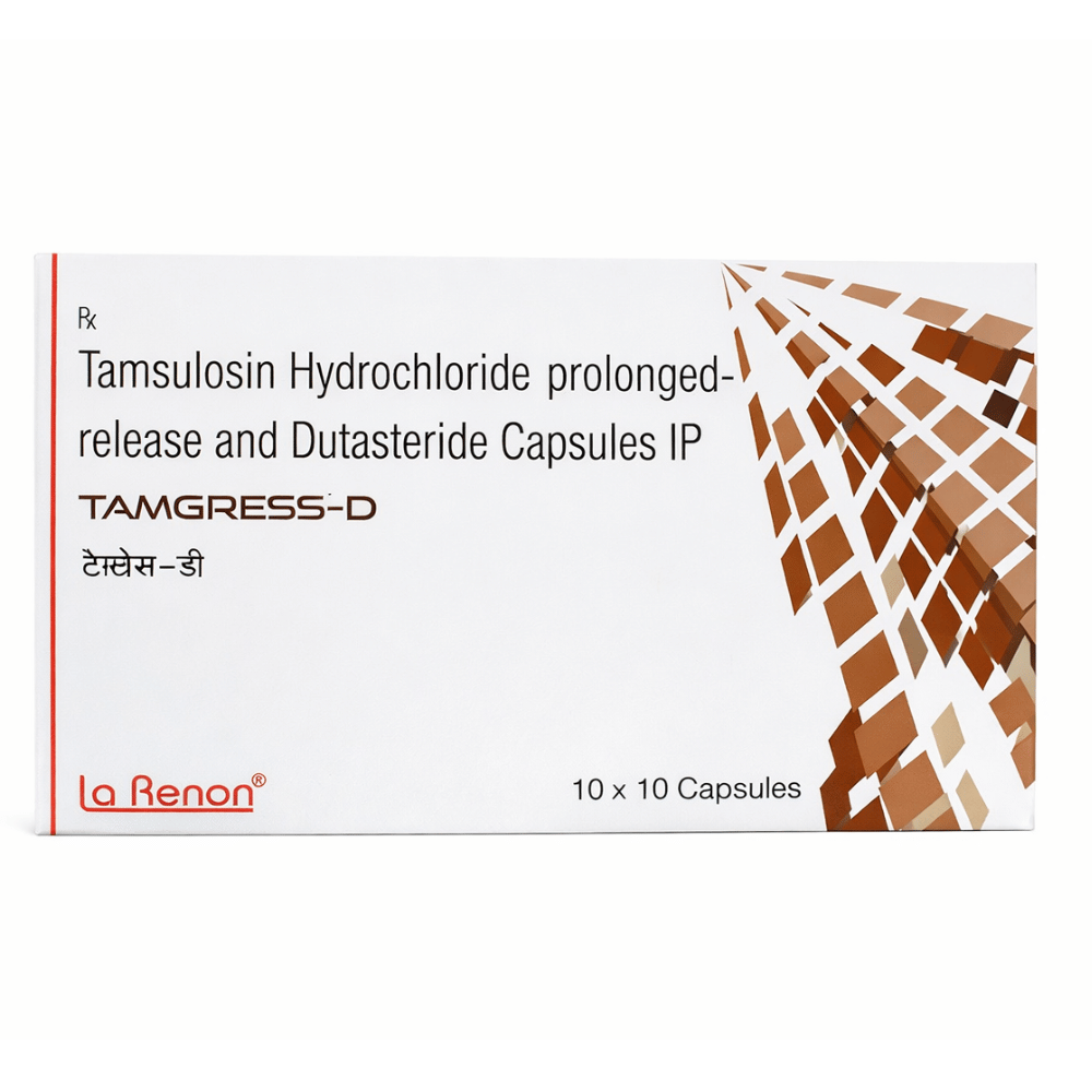 Tamgress-D Tamsulosin & Dutasteride Tablet are manufactured by La Renon Healthcare in India and contain 0.4mg & 0.5mg of Tamsulosin 0.4mg per tablet. Each Blister pack includes Pack of 100 Tablets, making Tamgress-D Tamsulosin & Dutasteride Tablet an effective option for . Prescription Required from your healthcare provider to purchase Tamsulosin 0.4mg medicine. Indogenmed deals in all type of generic Tamsulosin 0.4mg medicine.